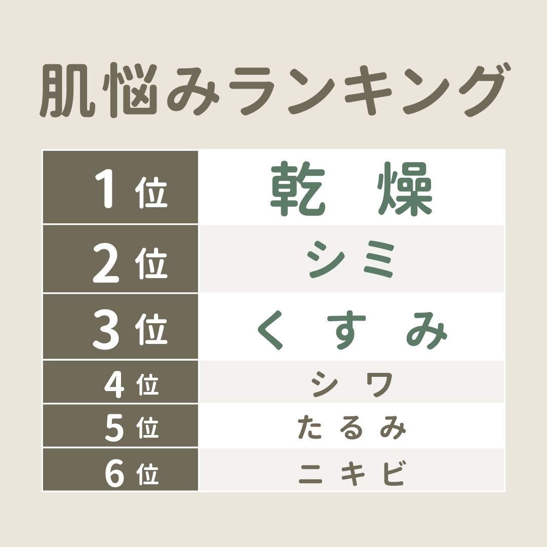 前文でもお話ししましたが、「乾燥肌」で悩まれている方は年代別にみても非常に多く、特にこの季節は保湿クリームやナイトクリーム・アイクリーム等々重ねて使用している方も多いはず。
